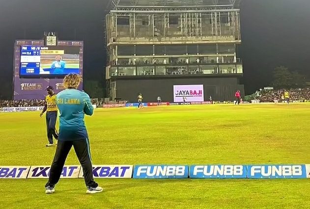 පසුගියදා දඹුල්ලේ පැවති ශ්රී ලංකා පාකිස්තානු තුන්වැනි විස්සයි විස්ස තරගය අතර තුර සහායක වේග පන්දු පුහුණුකරු ලසිත් මාලිංග හතරේ සීමාව අසල සිට පන්දු යවන්නන්ට උපදෙස් දෙනු දක්නට ලැබීය.