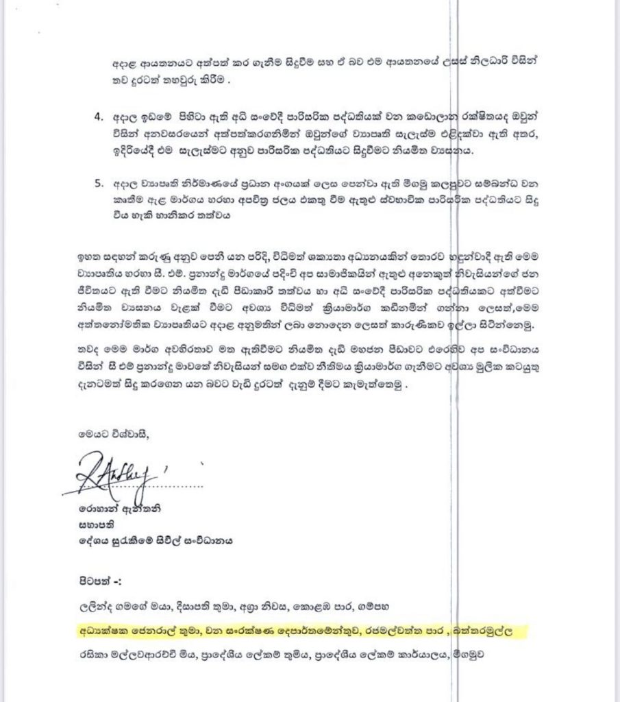 එම සංවිධානය පෙන්වා දී ඇත්තේ අදාළ ඉඩමට පිවිසීමට ඇති අඩි 12ක් පමණ මාර්ගය දිගේ ඉදිකිරීමේ අමුද්රව්ය ප්රවාහනය හා එහි අවශ්යතා සපුරා ගැනීමට යාමෙන් එහි ඇතිවන වාහන තදබදය නිසා එහි ප්රදේශවාසීන්ට දැඩි අපහසුතා මතුවන බවයි.